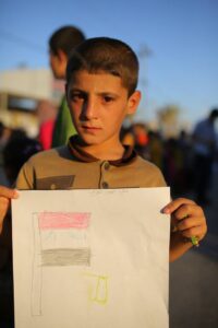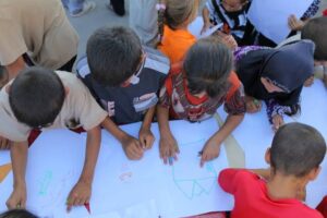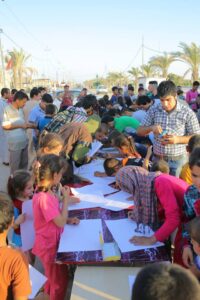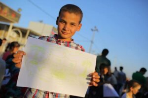 موجة تحاول أعادة البسمة على وجوه أطفال نينوى النازحين الى محافظة النجف.