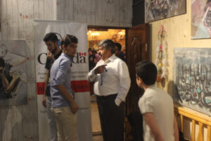 الامسية الموسيقية رافقها معرض فني للاعمال الفنية الخاصة بطالبات معهد الفنون الجميلة في النجف و كذلك معرض للاعمال الفنية بالسيد علي الحساني رئيس جمعية الخطاطاين في النجف.