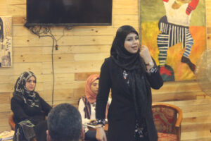 في المقابل زينب فاضل المؤسسة الشريكة لمجموعة زي ميديا للتدريب و الاعلان و التي تشارك زوجها في ادارة الشركة فقد اوضحت تجربتها كرائدة اعمال في النجف و في وسط لم يتعود بعد على المشاركة الفاعلة للنساء في العمل و الابتكار و الريادة.
